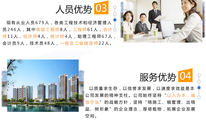 質(zhì)量求生存,以信譽求發(fā)展,以速度求效益是本公司發(fā)展的精神支柱。公司始終堅持“以人為本,誠信守法”的戰(zhàn)略方針,堅持“精施工、細管理、出精品、樹形象”的企業(yè)理念,厚德載物,拓展企業(yè)發(fā)展空間。 我們將繼續(xù)堅持“質(zhì)量第一、用戶第一、信譽第一”的宗旨,以最優(yōu)惠的價格,最優(yōu)質(zhì)的產(chǎn)品和最完善的服務(wù)來滿足廣大用戶的需求。依靠創(chuàng)新和優(yōu)良的品質(zhì),出一流產(chǎn)品,創(chuàng)一流效益,與您共創(chuàng)美好燦爛的明天! ...